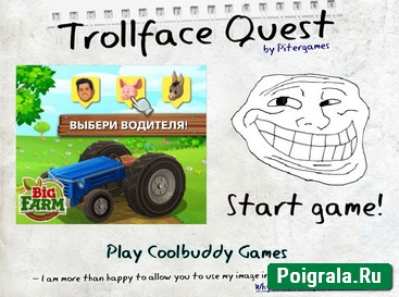 В этом разделе вам придется помогать героям проходить квесты и разгадывать задания. Здаесь есть1, 2, 3, 4, 5, 6 и другие части троллфейсов. Можно также пострелять ими из пушки, прямо как энгри бердс.